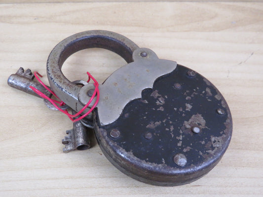 antico LUCCHETTO YALE con due chiavi in acciaio rivettato da forziere vintage di