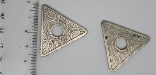 lotto 2 monete gettoni TRIANGOLARI CON FORO colore argento CHARLIE Massoneria ?