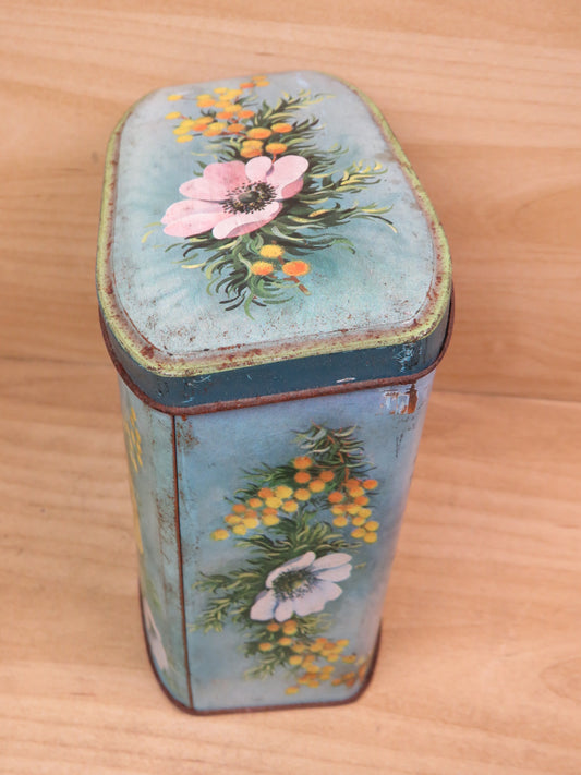 vecchia SCATOLA IN LATTA CON FIORI MADE IN ENGLAND per biscotti vintage di