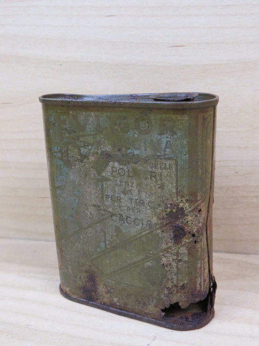 SCATOLA LATTA VUOTA PER POLVERE DA SPARO VULCANIA BRESCIA MONTICHIARI vintage