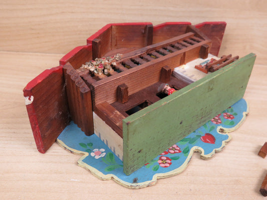 vecchia CASETTA SEGNATEMPO IN LEGNO con bambini rotanti vintage miniatura