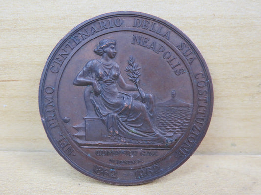 vecchia MEDAGLIA CENTENARIO COMPAGNIA NAPOLETANA DEL GAS 1862 1962 costituzione