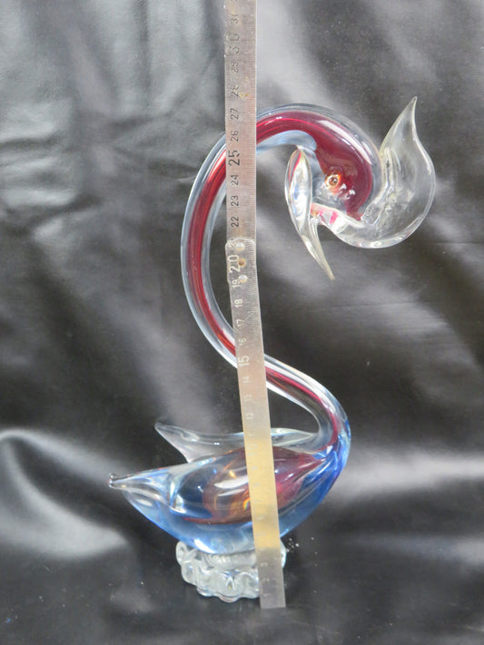 vecchia STATUETTA ANATRA STILIZZATA IN VETRO DI MURANO cigno blu rosso vintage