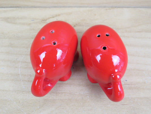 vecchio SET SALE E PEPE IN CERAMICA FORMA DI ELEFANTI rosso portaspezie di
