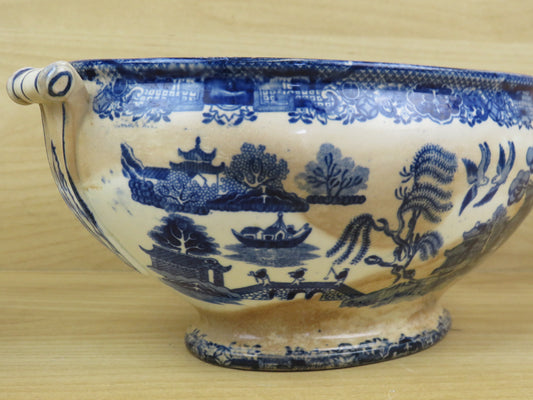 vecchia CIOTOLA OVALE IN CERAMICA INDO CINESE SCB decorata bianco e blu manici