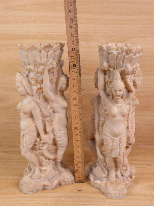 vecchia COPPIA DI VASI PORTAFIORI IN CEMENTO DEA SCULTURA figure femminili di