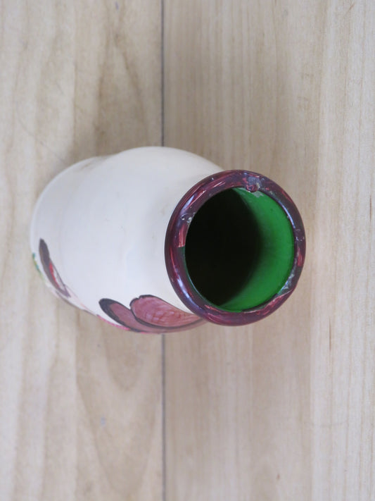 vecchia BOTTIGLIA DIPINTA A MANO IN VETRO bambino con fiori vintage decorato di