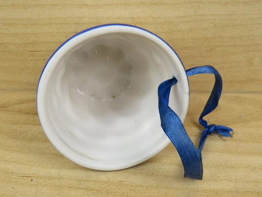 vecchio STAMPO PER BUDINO GELATINA IN CERAMICA DA APPENDERE vintage blu e bianco