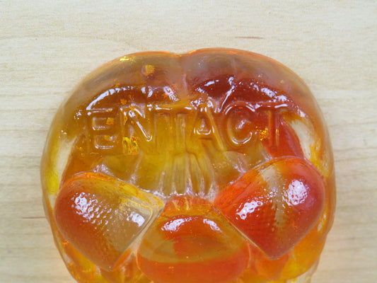 vecchio FERMACARTE PUBBLICITARIO IN VETRO LAVORATO ENTACT GOCCE arancione vintage