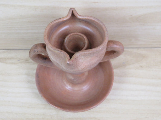 vecchio PORTACANDELA A FORMA DI LAMPADA A OLIO BUGIA in terracotta vintage da
