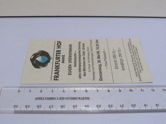 vecchio BIGLIETTO FRANKFURTER HOF MAINZ EUGEN DREWERMANN pubblicitario di