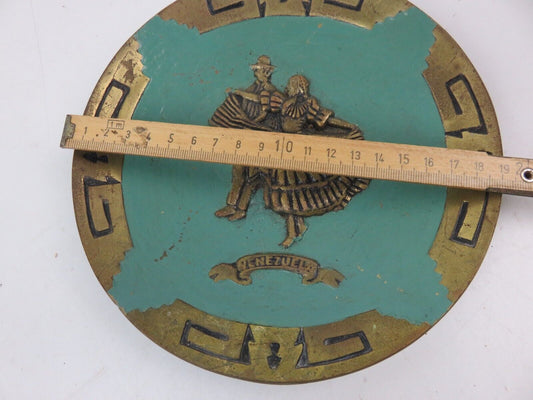 vecchio PIATTO DA APPENDERE in ottone inciso con BALLERINI souvenir VENEZUELA di