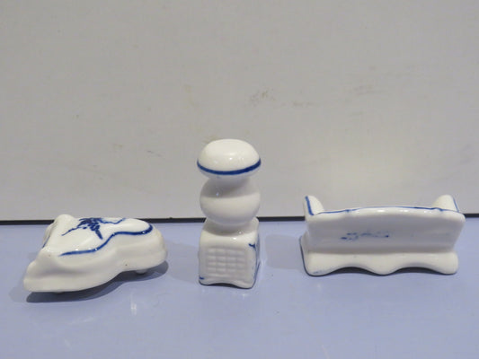 MINIATURA SALOTTINO IN CERAMICA casa delle bambole pianoforte sedie tavolo sofa