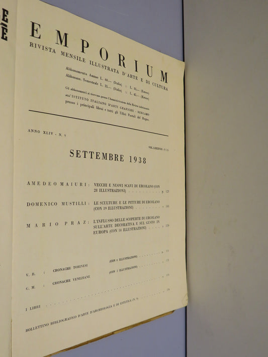 rivista EMPORIUM SETTEMBRE 1938 N 525 SCAVI ERCOLANO SCULTURE PITTURE NAPOLI di