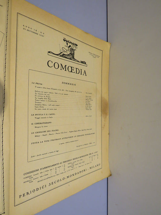 rivista COMOEDIA 20 SETTEMBRE 1927 N 9 TALLI DANNUNZIANA JEDERMANN DUSE BAKER