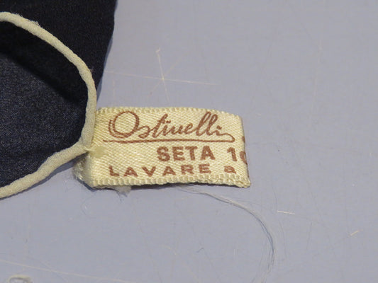 vecchio FOULARD IN 100% PURA SETA OSTINELLI blu fiori farfalle foglie vintage