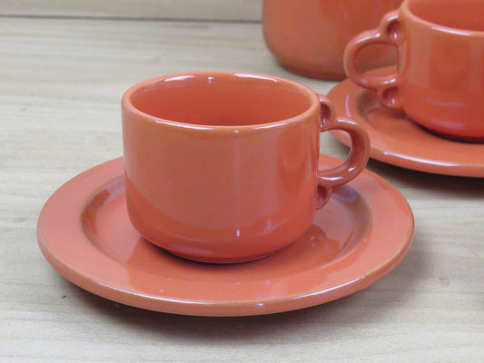 vecchio SERVIZIO DA CAFFE' IN CERAMICA ARANCIONE CED tazzine caraffa piattini