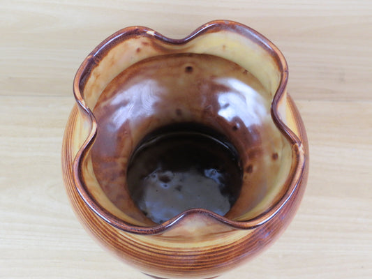 vecchio VASO IN CERAMICA MARRONE sottovaso smaltato vintage di cachepot sagomato