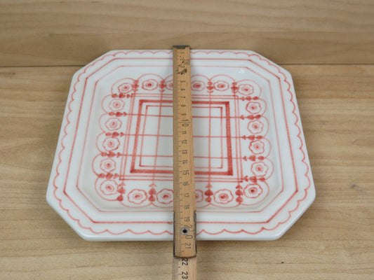 vecchio PIATTO IN CERAMICA ERNESTINE SALERNO ROSSO SELENIO decorato fiori di