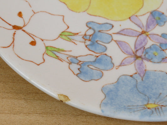 vecchio PIATTO IN CERAMICA ERNESTINE SALERNO decorato fiori gialli rosa blu