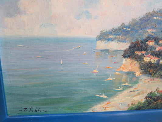 vecchio quadro dipinto a mano in cornice COSTIERA LIGURE LIGURIA costa mare ciel