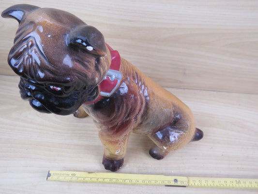 vecchia STATUETTA CANE IN CERAMICA BOTTIGLIA bulldog vintage statua collare di