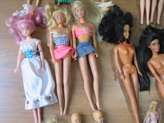 Enorme lotto di vecchie BAMBOLA BARBIE e non vintage o moderne d'epoca mignon da