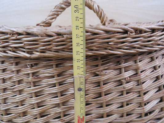 vecchio CESTINO PER FUNGHI in VIMINI per pescatore pesca con coperchio vintage