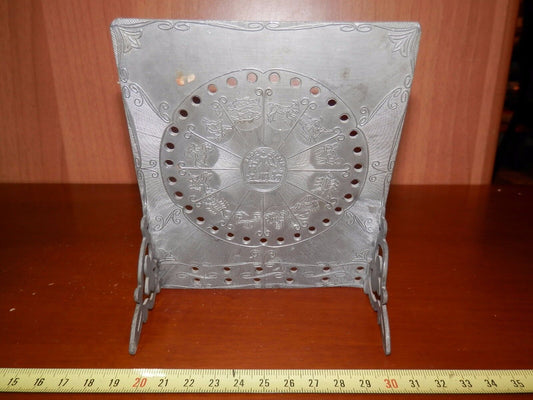 Antique solar calendar zodiac signs BLOCK ZINN in table tin