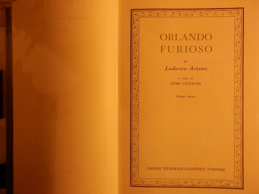 ORLANDO FURIOSO Volume one Ludovico Ariosto Edited by Remo Ceserani UTET by da