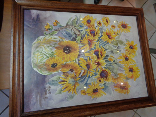 Old framed print reproduction FLOWERS IN A VASE by HELEN PAULO flower
