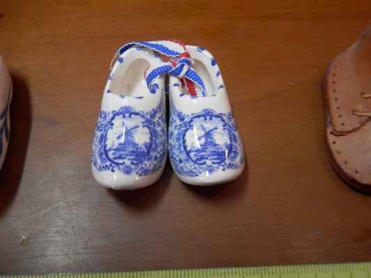 lot PAIRS OF DUTCH CLOGS miniature collectible ceramic SHOES in leather for