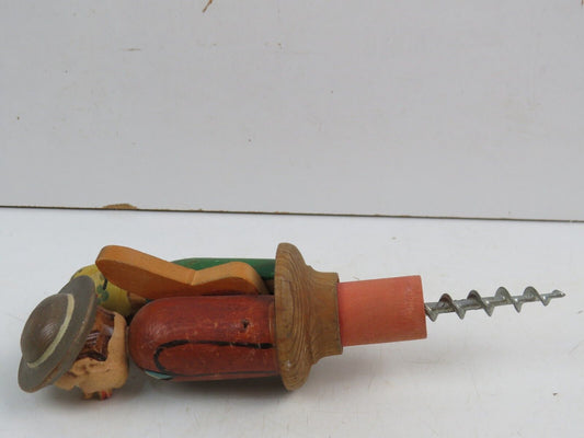 HAND CARVED CORKSCREW STOPPER in wood mechanically movable COUPLE KISSES by