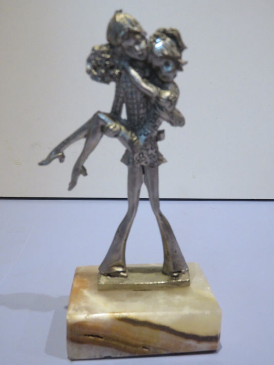 Onyx pewter figurine FIANCEE WITH FLOWER hugging in arms engraved MAR