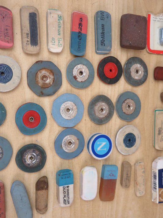 Enorme lotto collezione di GOMMA PER CANCELLARE rotonde rettangolari PELIKAN etc