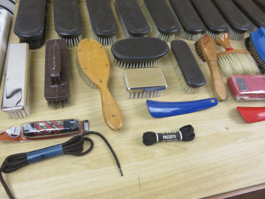 enorme lotto raccolta SPAZZOLA PER SCARPE CALZANTI LACCI calzolaio pulire scarpe