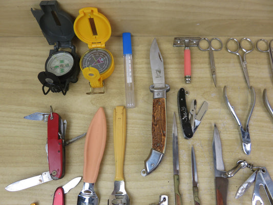 Enorme lotto di COLTELLINO RASOIO FORBICI BUSSOLA TAGLIAUNGHIE vintage d'epoca