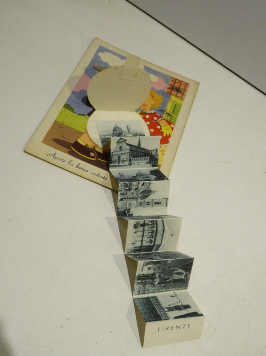 illustrated postcard OPEN THE BAG AND YOU WILL SEE FLORENCE 10 folded views 1955