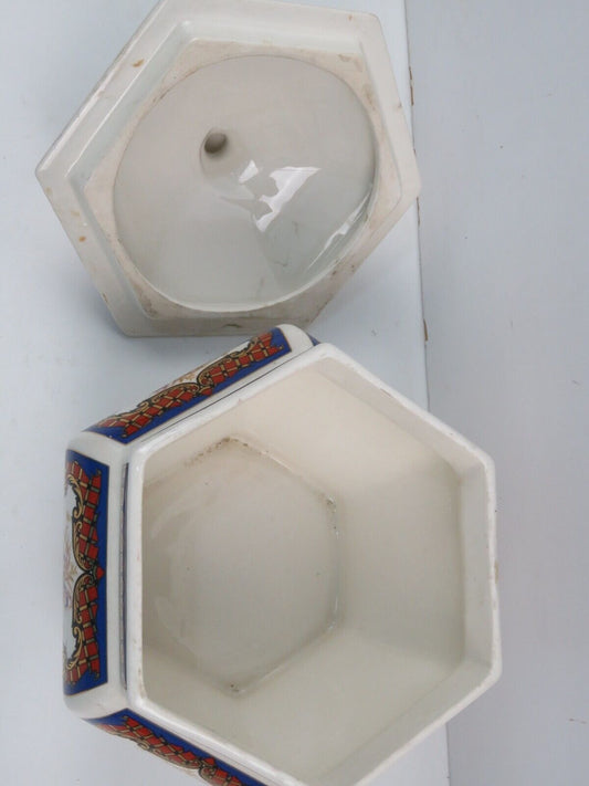 centerpiece box ceramic porcelain WHITE BLUE RED Chinese vintage
