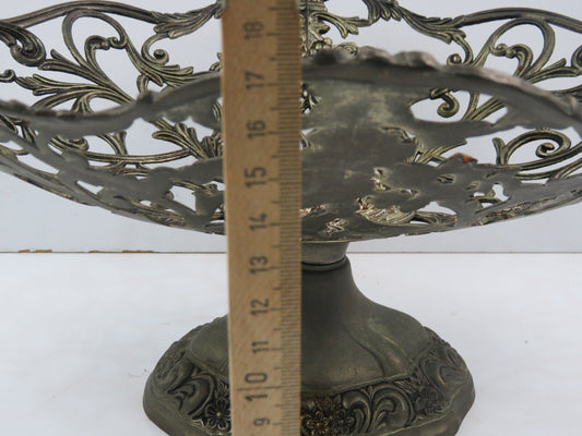 centerpiece tray in SILVER BRASS color METAL decorated in antique style
