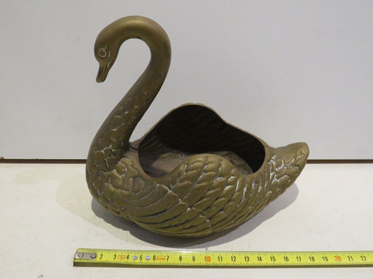 BRASS SWAN STATUETTE ORNAMENT miniature antique vintage pocket emptier