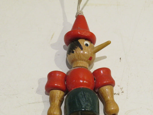 old PINOCCHIO WOODEN JOINTED keychain gadget puppet marionette