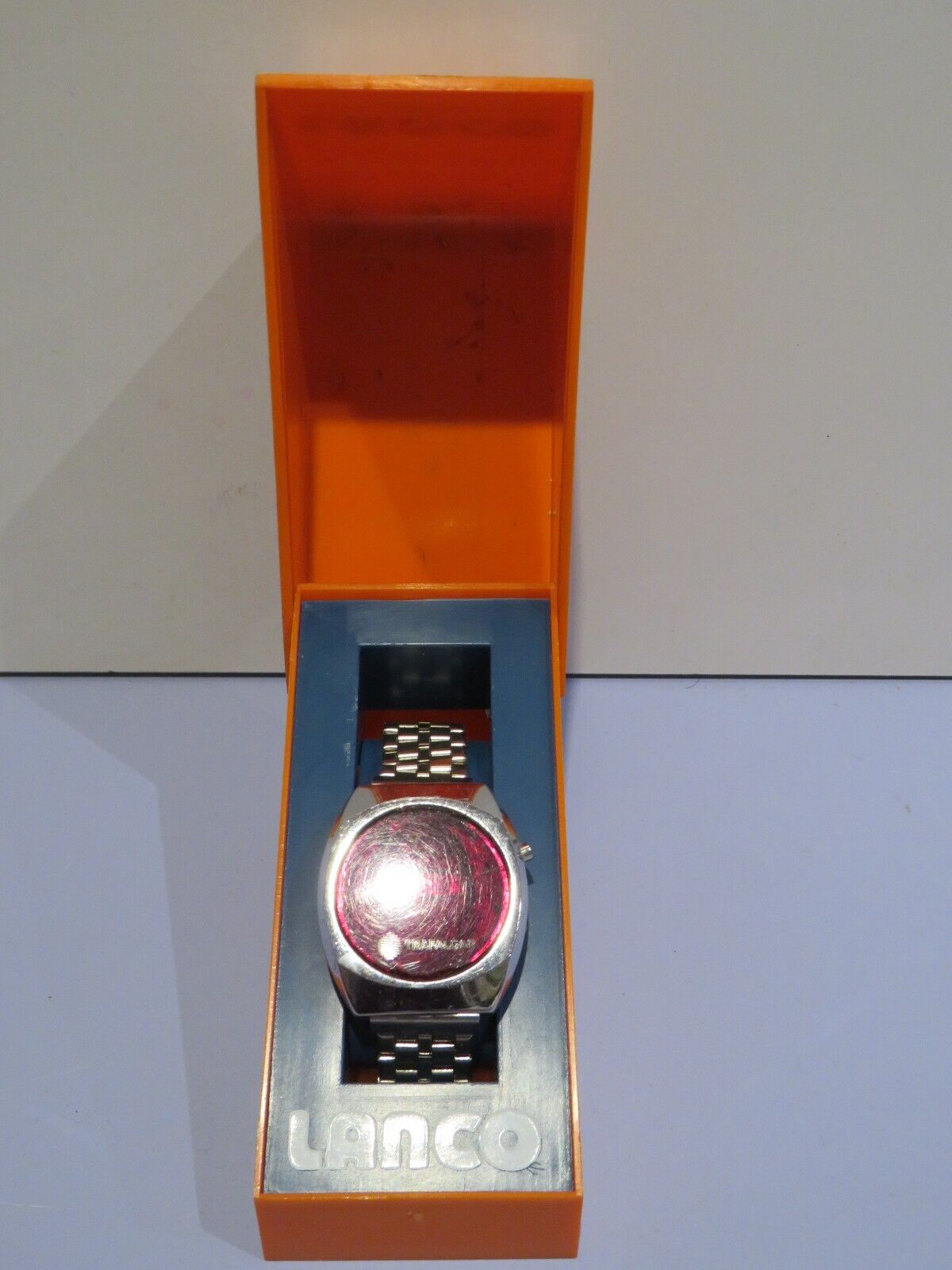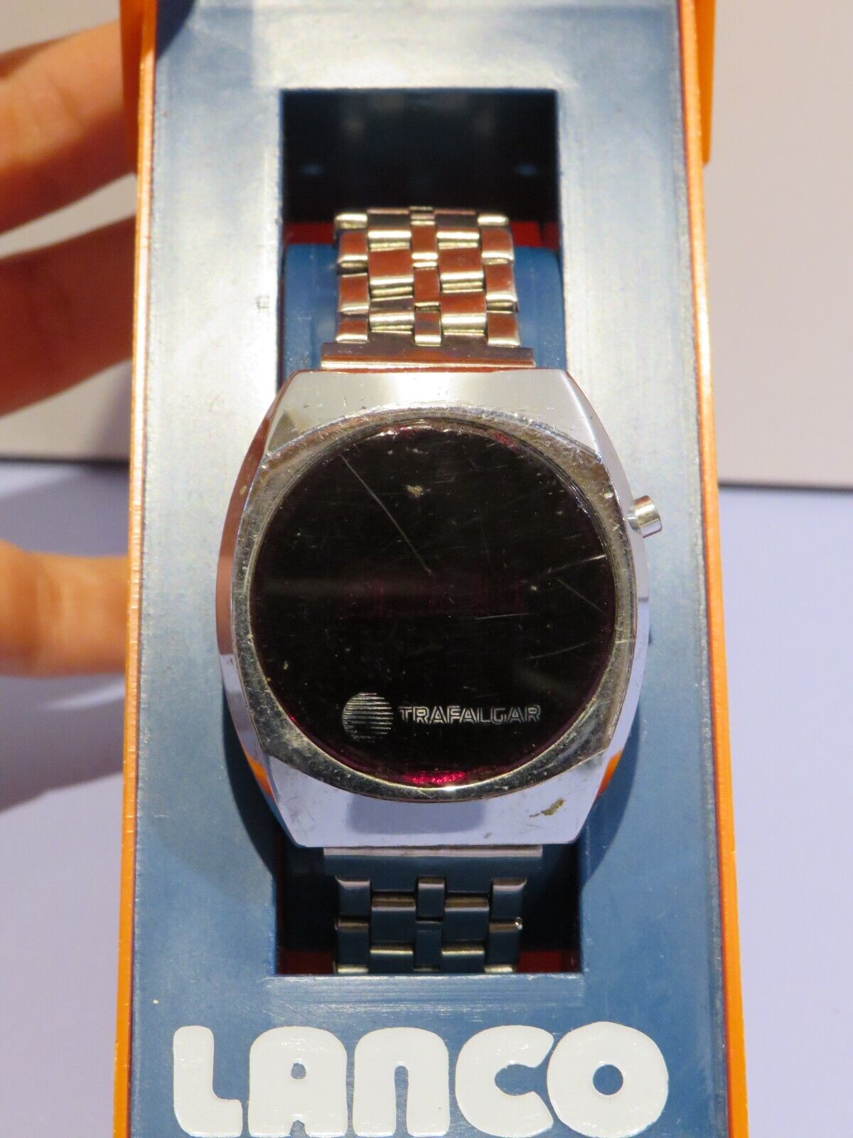 old LANCO SWISS TRAFALGAR WRIST WATCH red led vintage 70s for