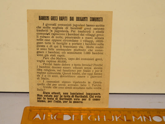vecchia CARTOLINA PROPAGANDA POLITICA BAMBINI GRECI RAPITI DA BRIGANTI COMUNISTI