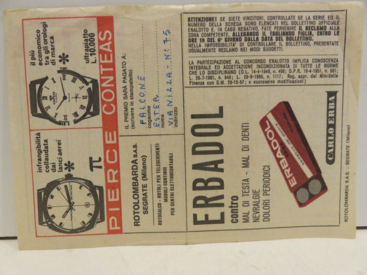 Old ENALOTTO form competition 18 3 May 1969 pre-filled ENAL form of