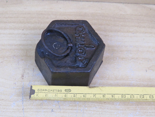 antico PESO ESAGONALE PER BASCULA con anello per bilancia 1 chilo vintage di