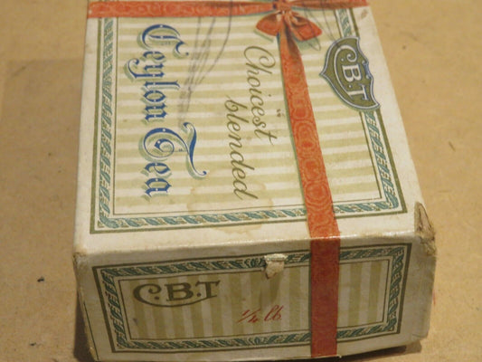 old cardboard box CEYLON TEA CHOICEST BLENDED CBT 1/4 lb vintage era