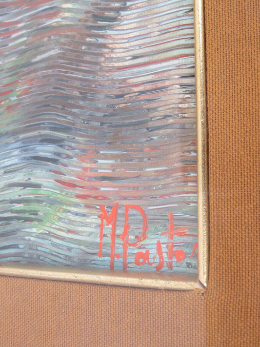 old hand painted painting with serrated spatula M PASTORE vintage technique