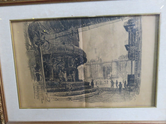 Old print WEAPONS AND AMMUNITION IN ENGLAND AT THE FOOT OF THE FURNACE foundry