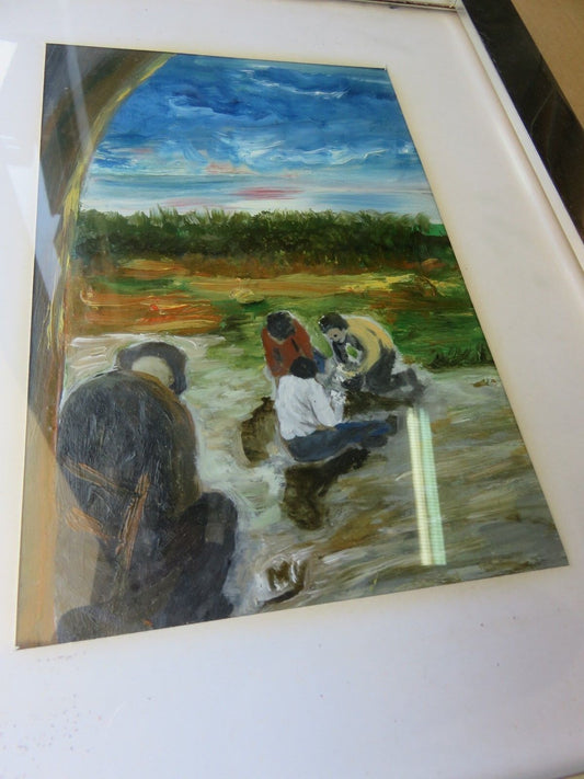 Old hand painted painting ON SAND by painter MY painting painter COUNTRYSIDE